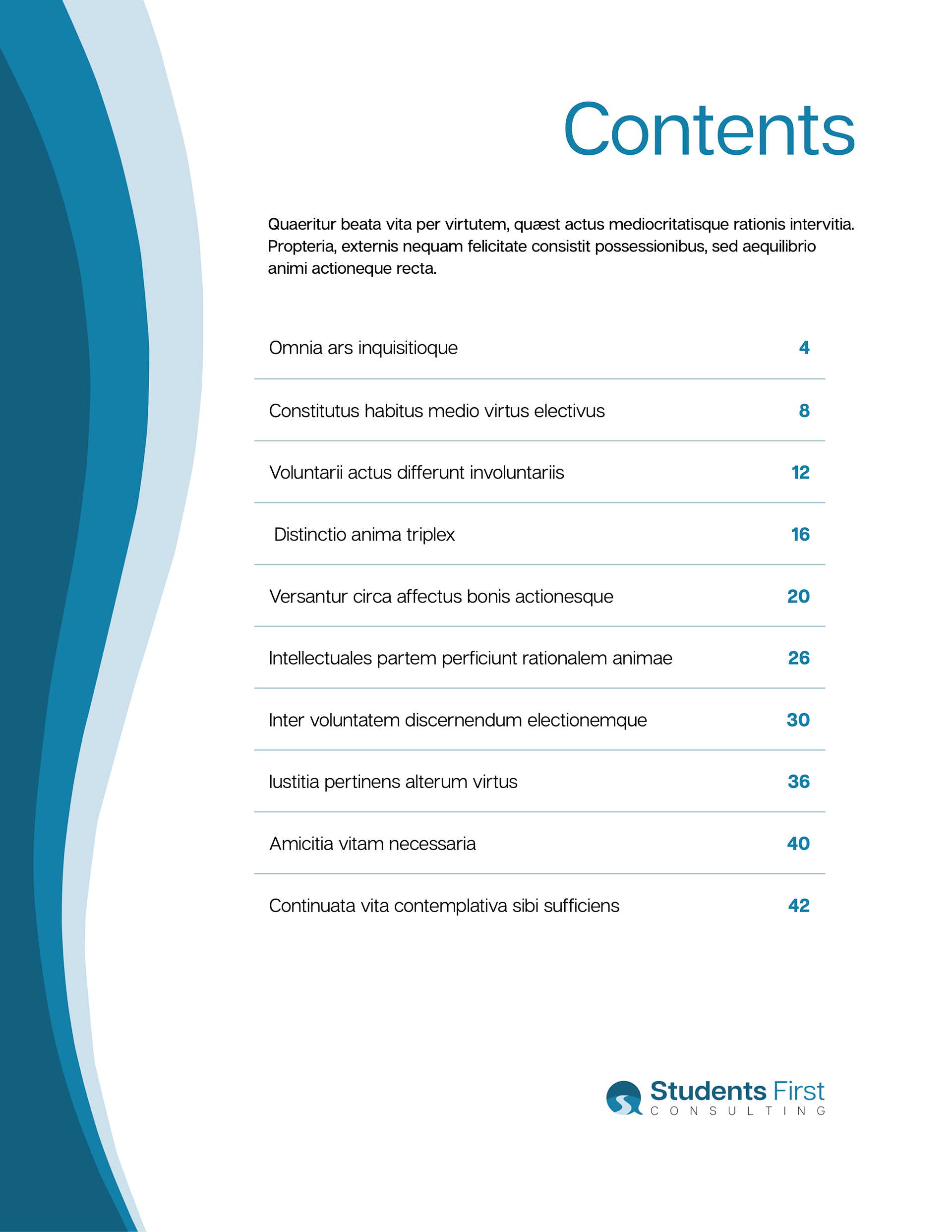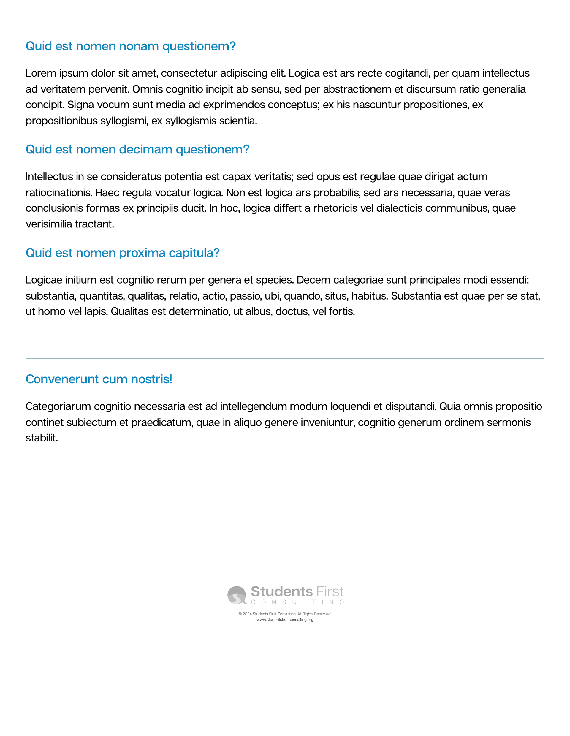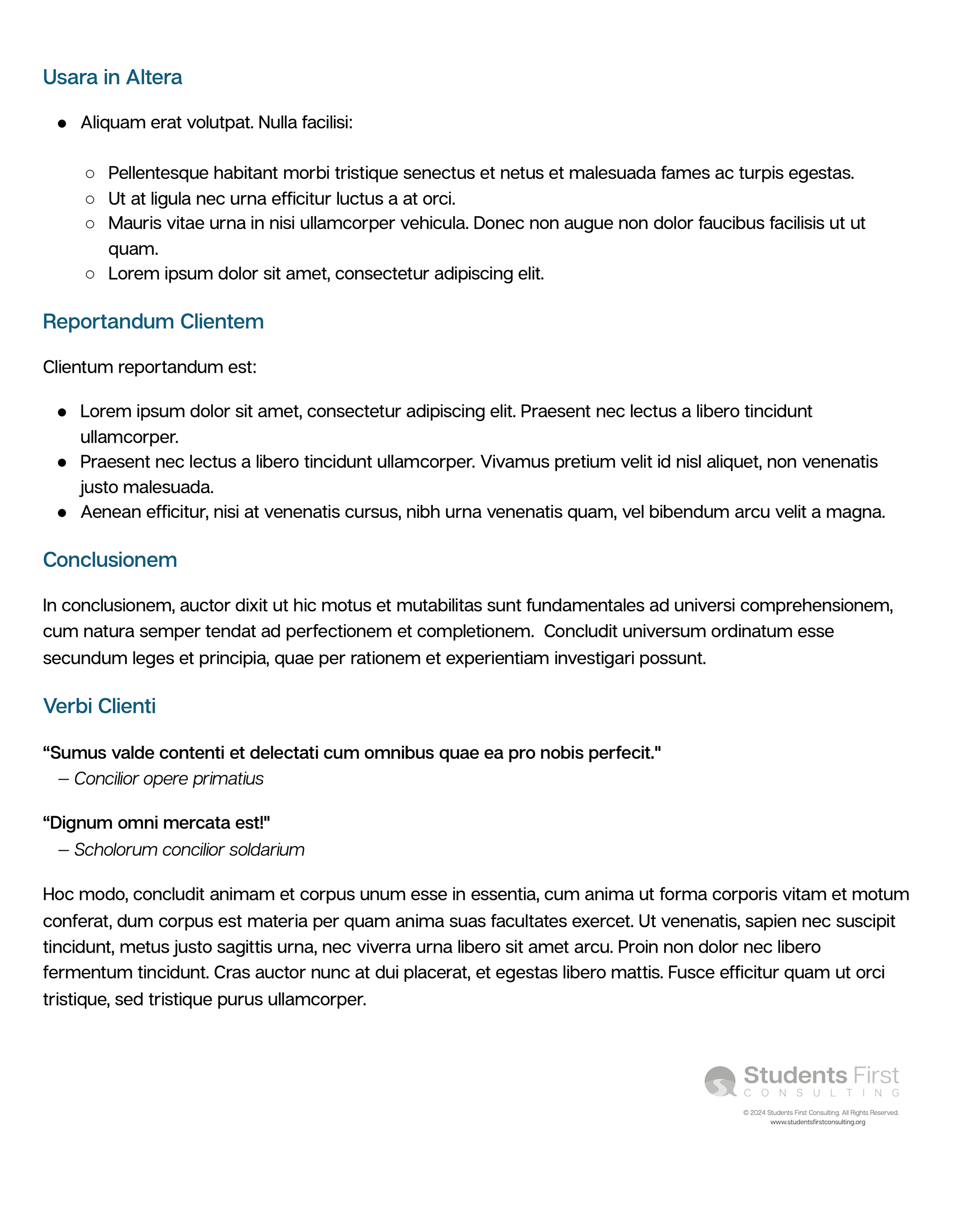 For Students First Consulting, I created a set of editable branded document templates, with elements they could reformat, reuse, and modify to create digital product offerings for their clients. I provided multiple styles for added visual interest, but ensured that each was consonant with their brand voice and existing assets.